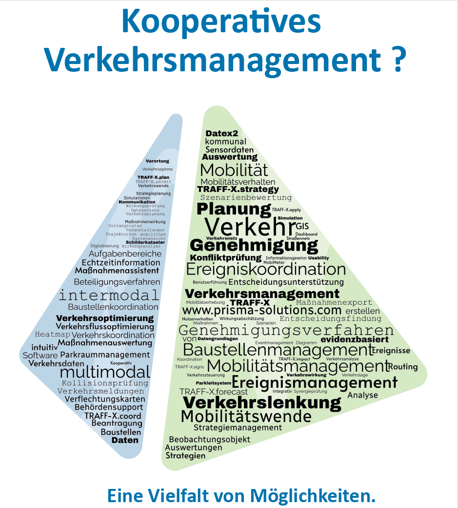 Die modulare Software-Plattform TRAFF-X® ermöglicht die Planung, Koordination und Publikation von Ereignissen und Verkehrsmanagementstrategien sowie das Management von multimodalen Verkehrsnetzen und bietet umfassende Auswertungs- und Analysemöglichkeiten. Im DACH-Raum vertrauen bereits zahlreiche Kunden auf TRAFF-X® und die Expertise von PRISMA solutions.